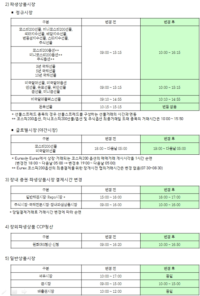 한국거래소 CME글로벌연계거래 거래시간 일시 변경 안내